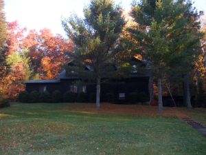 It’s cast and blast season on the Au Sable. Fly fish in the morning; bird hunt in the afternoon. But, I left my gun at home. Instead I cast streamers all day under a clear blue sky….which is not good streamer fishing weather. I didn’t complain. Who would? I also went fly fishing after dark under the moonlight. It was my very first attempt at wading the Au Sable at night. It was cold. I could see my breath…but not much else….only the shadows of trees in the night sky. It was a sensory experience like none other, casting blindfolded, feeling my way down river. The trout would not come out and play that night. I didn’t care. A hot fireplace and glass of wine was waiting for me at the cabin. The next day I floated down the South Branch in a 21′ Au Sable River drift boat. It was tricky to maneuver it through downed sweepers. The fishing was just as slow as the day before. But, I finally got to see the famous George Mason Chapel.
