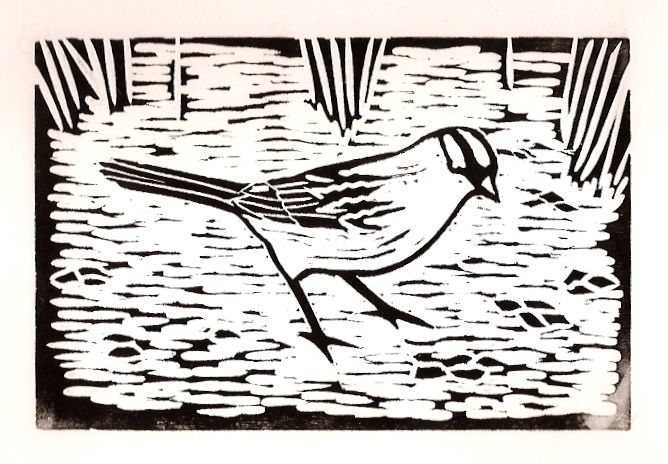 On August 28th, 2010 I participated in the Plein Air Paint Out in downtown Adrian, MI. I chose to cut a linoleum block in Berry Park which is right next door to the Historical Museum. It’s one of my favorite parks in Adrian. Many folks dont even know it exists since it’s tucked away in a little corner of Adrian. I found it a few years ago looking for a geocache. I dont know if the cache is still there? I didnt look for it when I cut this block. I just sat and carved among the conifer trees. In my mind this is what a park should be. Landscape designer, Jens Jensen would approve. Jens believed that parks were for the visual arts, music, literature and drama as much as they were for sports. Creativity and imagination start there. The problem solvers of tomorrow are born in places like this. I want to say thanks to the person who designed this park. The Secret Garden is small, but it’s perfect!