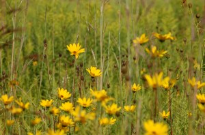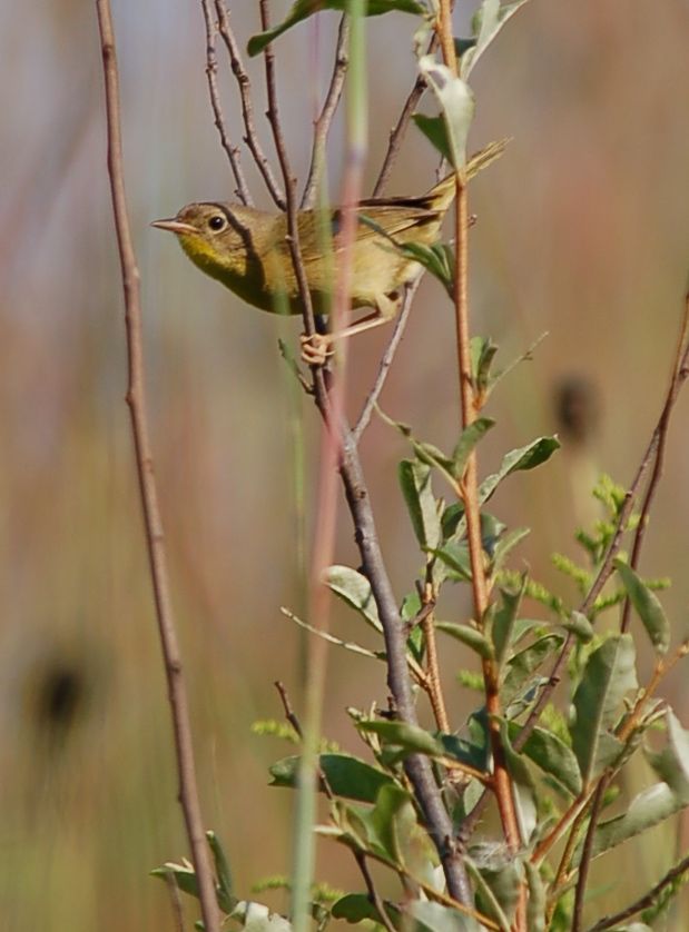 As I walked through the prairie I heard a familiar bird call. It’s a call that I hear on my weekday walks. I didn’t have my binoculars so I couldn’t be sure of what it was. I watched it closely as it darted in and out of the brush. And, then finally it flew out into the open. I quickly snapped her picture. In an instant she was gone. After reviewing the photo I’m pretty sure it was a female Geothlypis trichas (Common Yellowthroat). Her call note is a quick “chep”. I never heard the more common song of “witchety, witchety, witchety”. But, I’m almost certain it is the Yellowthroat.