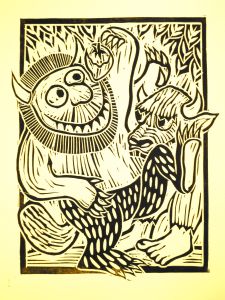 This print will never be sold since I do not have permission from Mr. Sendak (Where the Wild Things are). His book was my favorite as a child. So, I will donate one to AHS and I also plan to donate one to the Circle of Art in Saline, MI to benefit the Food Gatherers.